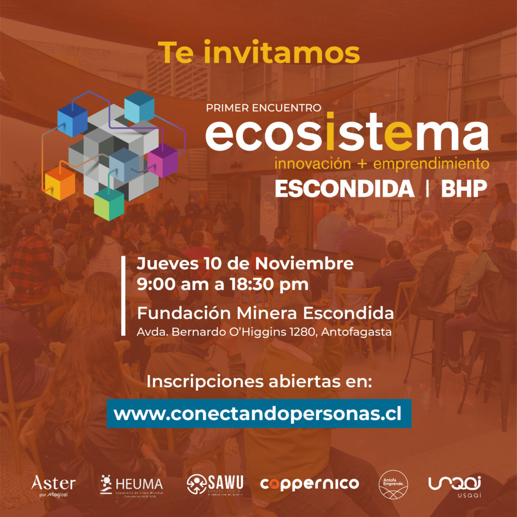 Escondida | BHP te invita al primer encuentro anual de innovación y emprendimiento. Este evento reunirá a líderes del ecosistema nacional y regional para reflexionar sobre el desarrollo tecnológico, impulso del talento innovador y el crecimiento sostenible.