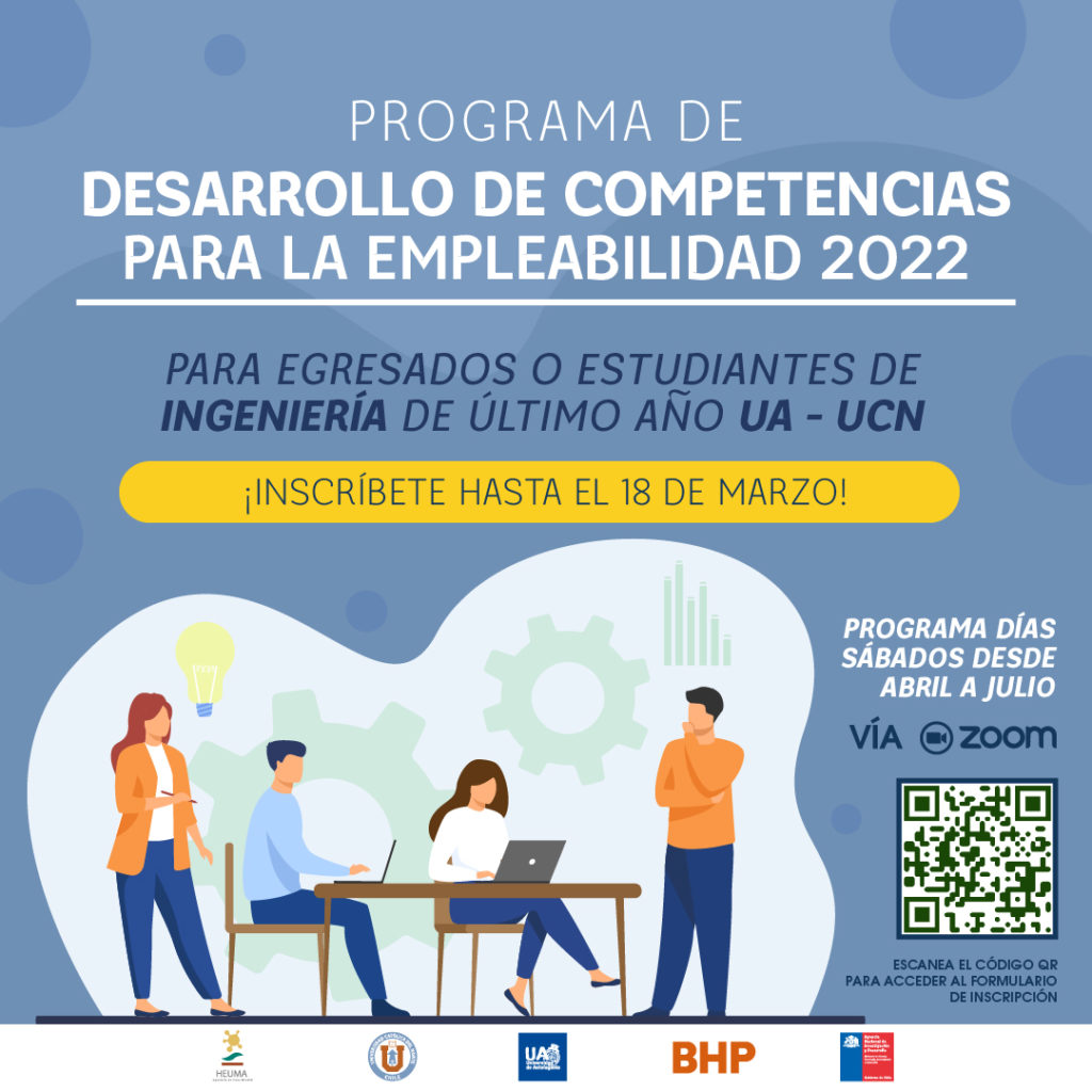 Este programa es desarrollado por los Equipos de Coach de las Facultades de Ingenierías UCN y UA, con el patrocinio de HEUMA y BHP. El programa dispone de 60 cupos (30 para cada universidad) y está dirigido a estudiantes de las Facultades de Ingeniería de último año y egresados/as UA y UCN (máximo 1 año de antigüedad).